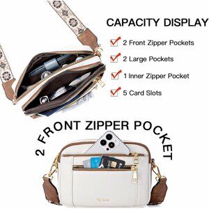Large Capacity Trendy triple cross body bags has 2 large zipper pocket, 1 inner zipper pocket, 5 card slots and 2 front zipper pocket, large capacity can meet your daily needs. You can store your cell phone, wallet, keys, lipstick, napkins and other daily necessities