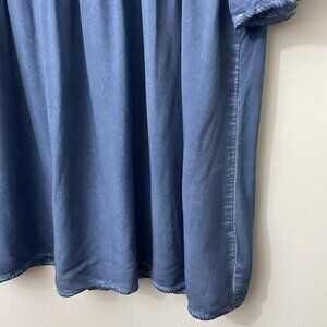 Temperance Boho T-Shirt Top Womens L Blue Crochet Blouse Tassel Lace Fringe EUC