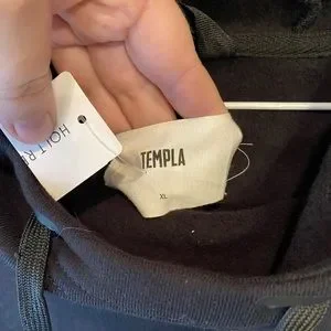 Cut from super soft cotton fleece, this hooded sweatshirt is designed with a special softening treatment for a luxurious hand feel and TEMPLA PROJECTS BVBA Antwerp artwork printed at the back.
