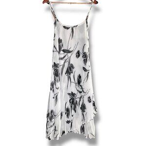 Temptation Italy Pleated Maxi Dress Flowy Asymmetrical Romantic Black & White L