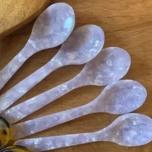 Plastic Demitasse Spoons - 5 tortoise shell, 5 lavender quartz