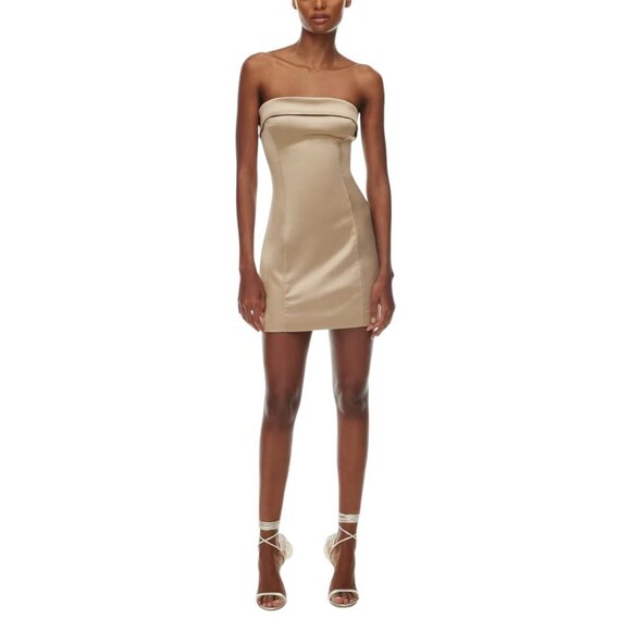 Tags: Satin, Going Out, Tan, Gold, Brown, Tube Dress, Sleeveless Dress, Party, Bodycon