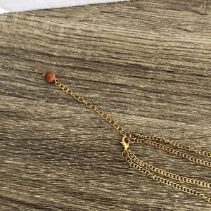 Fabric multicoloured beads on a goldtone chain with a secondary plain goldtone chain. This is a two strand necklace.