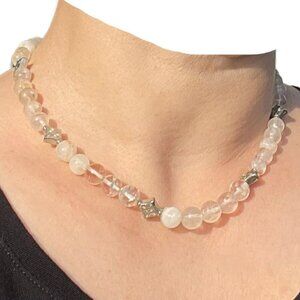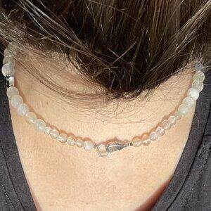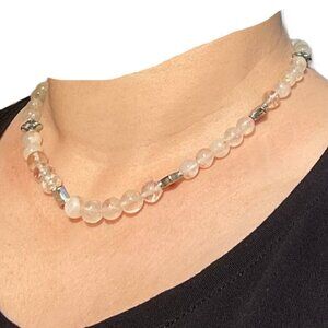 Ten Thousand Villages Quartz Spheres Round Beads Necklace Clear White Silver 17'