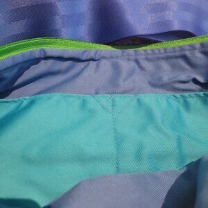 2. mainly blue and lime (not yellow as it appears in the picture), and teal, with a blue interior/lining. AVAILABLE