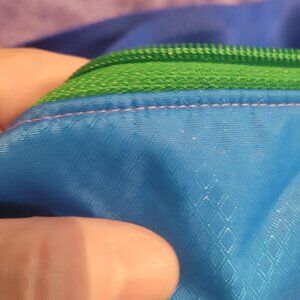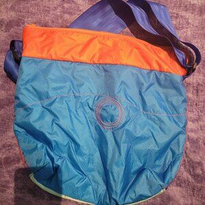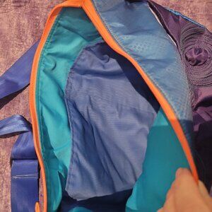 1. mainly purple and blue with orange zipper and blue/teal lining/interior - SOLD