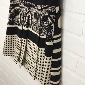Tenax pleated BLACK ECRU classic retro dress sleeveless round neck stretchy 42