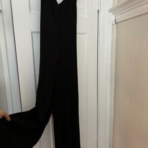 Black tencel jumpsuit with attached belt. Perfect for casual or more formal events.