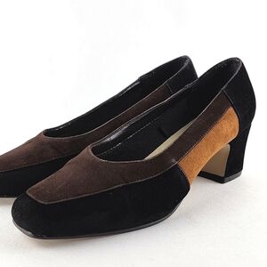 Tender Tootsies Pilar-2 Colourblock Heeled Pump Black Tan Brown Size 6W