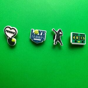Serve up some style with this set of 7 tennis-themed shoe charms! Featuring racquets, balls, and other sporty designs, these charms are perfect for tennis enthusiasts looking to bring their love for the game to their Crocs or clogs.