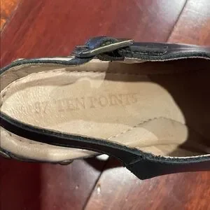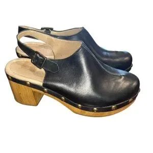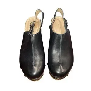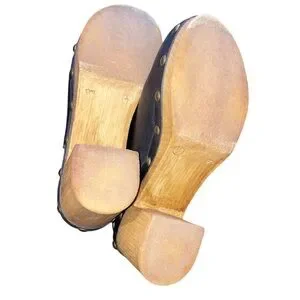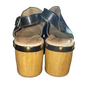 Black Leather with wood heel