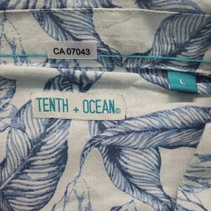 Stay stylish and comfortable with this Tenth + Ocean men's blue and white floral button-up shirt. Made from a breathable linen blend fabric, this shirt features a spread collar and short sleeves, making it perfect for casual occasions in the summer or spring. The classic design is accented with the brand's logo and comes in a size large, suitable for a regular fit. Pair it with your favorite jeans or shorts for a laid-back yet put-together look that exudes effortless charm and sophistication.
