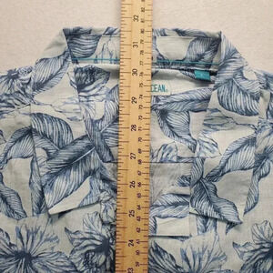 Tenth Ocean Mens Blue White Floral Linen Blend Button Up Shirt US Size Large