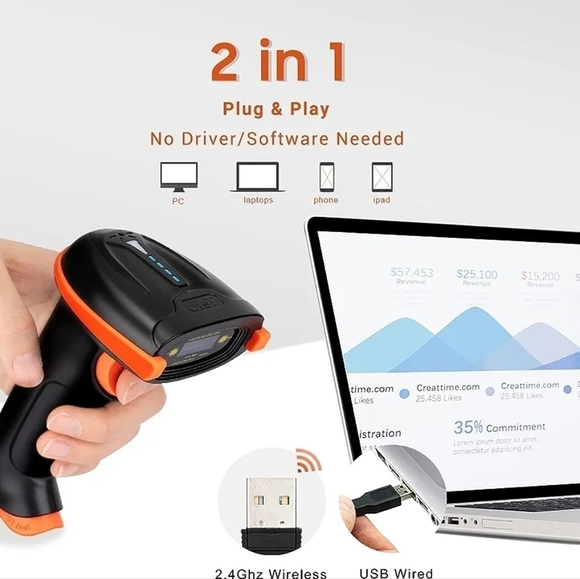 The orange anti shock silicone protective cover can prevent scratches and friction even when dropped from up to 6.56 feet. IP54 technology protects the wireless barcode scanner from dust.