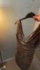Dazzle in this Terani Couture mini dress. Features a shimmering silver sequin bodice. Elegant brown ruched skirt adds sophistication.