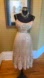 Stunning midi dress with gold accents. Features delicate lace and ruched bodice. Ideal for elegant events. Size 6.