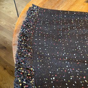 Overall amazing condition. Brown base with multi colour dots, fringe and sequins – colours gold, cream red, white and black. Fully lined and flattering fit.