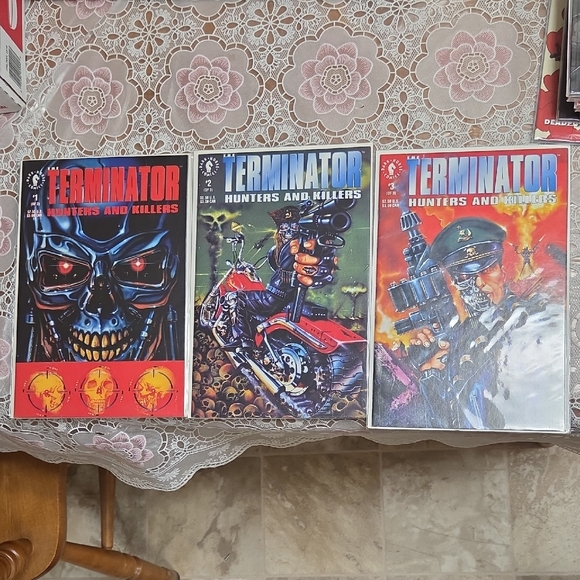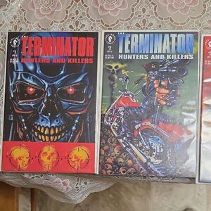 Set of three Terminator comic books. Vibrant covers with red, blue, and black tones.