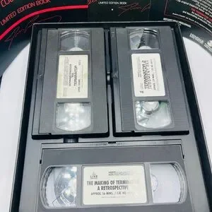 Vintage Terminator VHS tapes in black. Includes a limited edition book.
