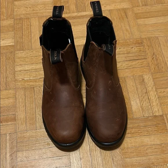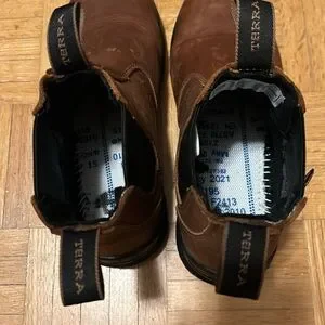 Experience comfort and durability with Terra brown leather boots. Perfect for any occasion, these boots offer a classic style with a rugged edge. Please zoom in all photos, can be unisex, women size 8