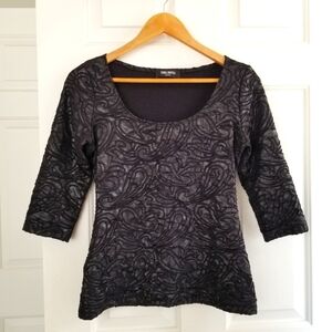 Terra NOSTRA FEMME Black 3/4 Sleeve Textured Pattern Top Size M