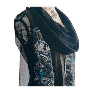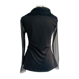 This romantic top by Terra Nostra blends sheer black mesh sleeves, burnout velvet patchwork, and a soft cowl neckline for an ethereal, whimsigoth aesthetic. Lightweight with a flattering silhouette — perfect with dark denim, maxi skirts, or layered under a velvet blazer.