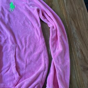 Kids XL bright pink terrycloth Ralph Lauren Polo hoodie with lime green insignia. Excellent condition.
