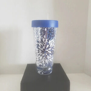 Tervis Fiesta 24oz tumbler blue/white wrap with lid and straw.