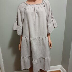 Terzo Millennio Linen Tiered Dress Extra Large Size 0X Made in Italy Lace Accent