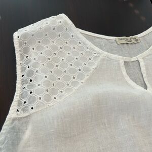 Terzo Millennio sleeveless tunic white linen with delicate cotton eyelet detailing on the shoulders.