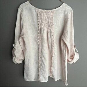 Terzo Millennio Premium Linen "European Flax" Long Sleeved Top Medium Pale Pink