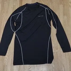 Black performance shirt with white stitching. Fitted. Excellent condition.