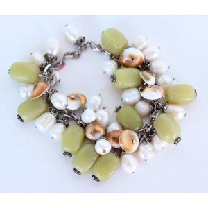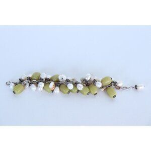 Tess Klein Women's Green Funky Charm Bracelet 9" 925 Canada Gemstone Pearls $475