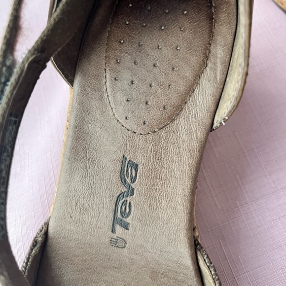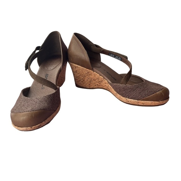 Teva Riviera Shoes Brown, Mary Jane Cork Wedge Sandals. Size 8