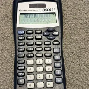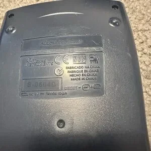 Texas Instruments device with a sturdy build. Features a labeled back panel.