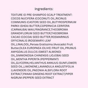 Texture ID TM Pre-Shampoo Scalp Treatment nourishes and stimulates scalp to help strengthen and thicken hair from the root. No Parabens, Phthalates, Mineral Oil, Petrolatum, Gluten. Cruelty-free.