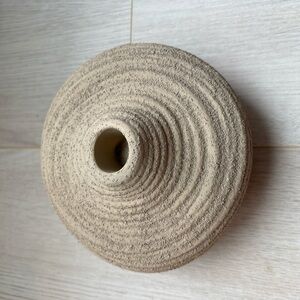 Unique textured candlestick holder in a beige color. Perfect for home decor.
