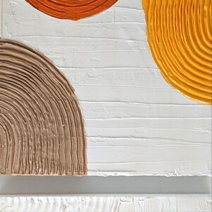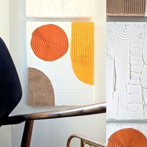 Handmade textured plaster. Nice clean white base, tangerine & beige.