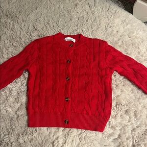 Medium crop, so hits lower than the bust line, almost sits at the edge of your pants