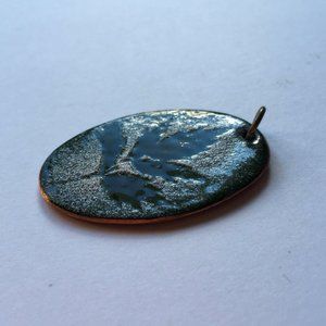 Textured Design - Botanical Leaf Enamel on Copper Pendant