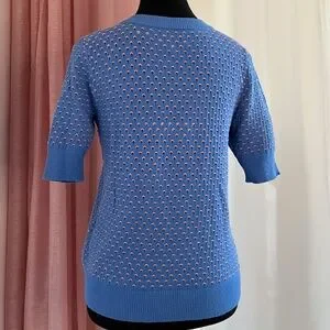 Textured knit in soft cobalt blue with blush pink eyelets.