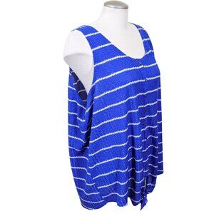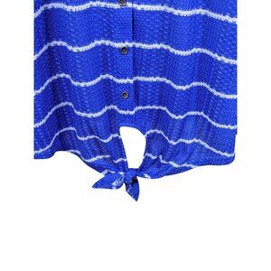 Textured Plus Size Top Womens 3X Blue Striped Sleeveless Tie Waist Vacation