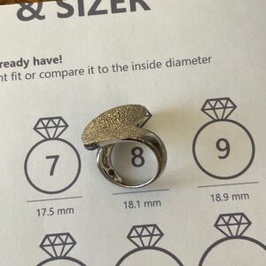 Unique textured silver tone ring with an abstract, wavy design. Perfect for adding a statement to any outfit.