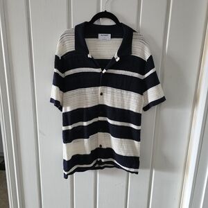 Textured Striped button down tee