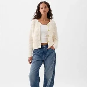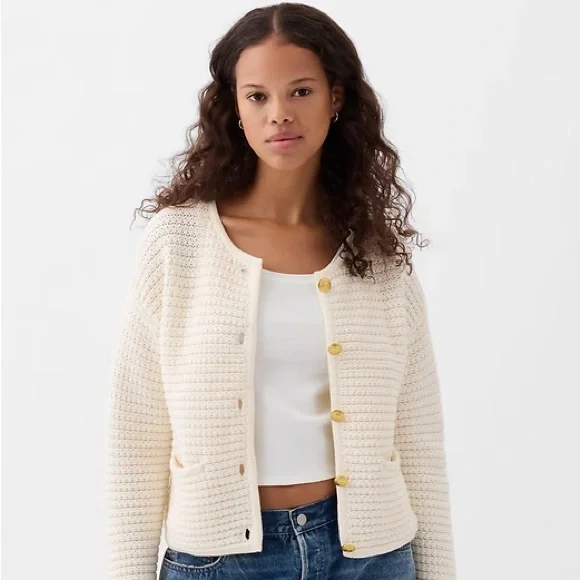 Soft, textured cotton sweater jacket.