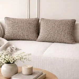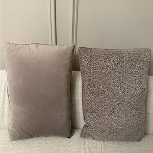 Set of two textured beige brown throw pillows. Perfect for adding warmth to any space.
