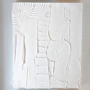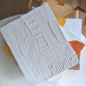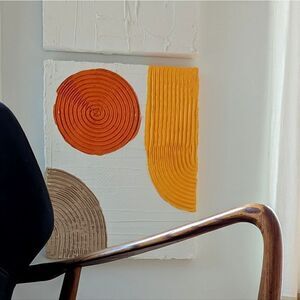 Handmade textured plaster. Nice clean white base, tangerine & beige.