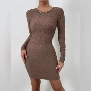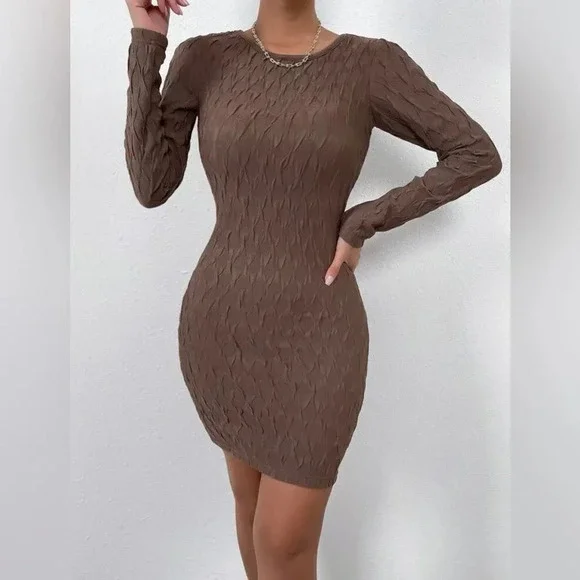 Textured Round Neck Bodycon Dress