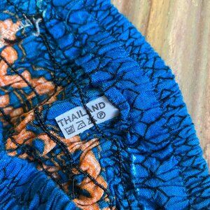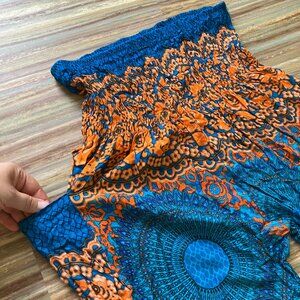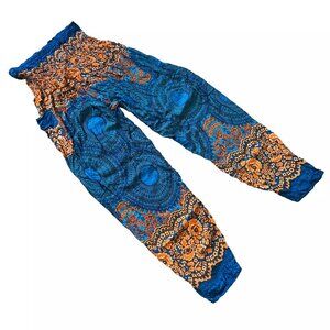 Thai Harem Loose Pants with Wide Smocked Waist Blue & Orange Mandala Sm-Med