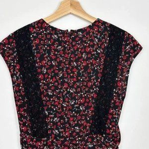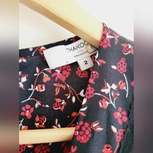 Thakoon Collective Paisley Tie Front Midi Dress Black and Red Floral